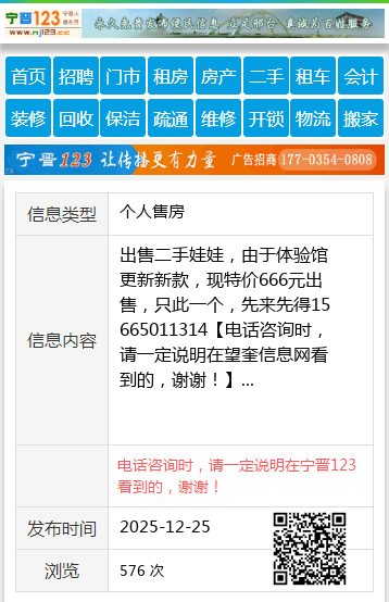 出售二手娃娃,由于体验馆更新新款,现特价666元出售,只此一个,先来先得15665011314