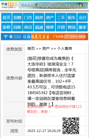 [烟花]恭喜您成为尊贵的《大连华府》珑湖湾业主!7号楼高层[婚房首选,全年无遮挡,新装修未入住打造望奎最高端住宅,102+4平,43.5万可议,可贷款电话15184565342 【电话咨询时,请一定说明在望奎信息网看到的,谢谢!】 |