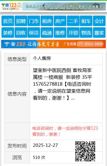免责声明:本栏目信息由网友自行发布,望奎信息网不承担任何责任!提高警惕,谨防诈骗!做推广、做信息置顶!请加望奎信息网客服微信:wangku0455