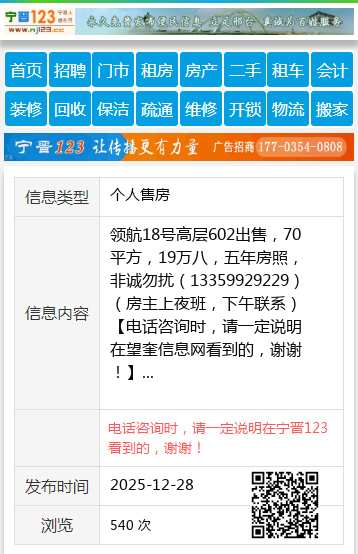 免责声明:本栏目信息由网友自行发布,望奎信息网不承担任何责任!提高警惕,谨防诈骗!做推广、做信息置顶!请加望奎信息网客服微信:wangku0455