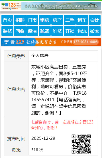 东城小区高层出卖,五套房,证照齐全,面积85-110不等,未装修,视野好交通便利,随时可看房,价格实惠可议价,不是中介,电话18145557411 【电话咨询时,请一定说明在望奎信息网看到的,谢谢!】 |