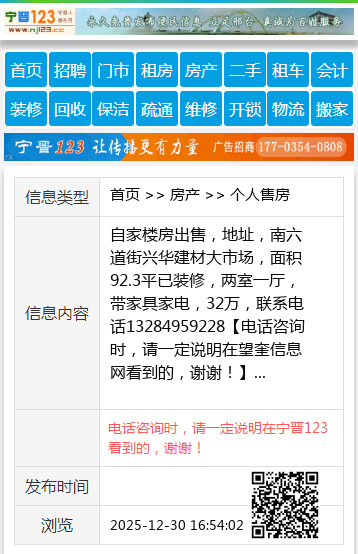 自家楼房出售,地址,南六道街兴华建材大市场,面积92.3平已装修,两室一厅,带家具家电,32万,联系电话13284959228 【电话咨询时,请一定说明在望奎信息网看到的,谢谢!】 |
