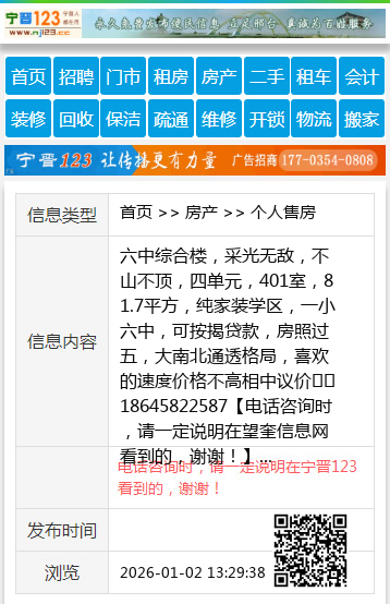 六中综合楼,采光无敌,不山不顶,四单元,401室,81.7平方,纯家装学区,一小六中,可按揭贷款,房照过五,大南北通透格局,喜欢的速度价格不高相中议价☎️18645822587 【电话咨询时,请一定说明在望奎信息网看到的,谢谢!】 |