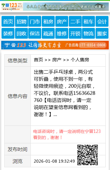 出售二手乒乓球桌,两分式可折叠,使用不到一年,有轻微使用痕迹,200元自取,不议价。联系电话15636628760 【电话咨询时,请一定说明在望奎信息网看到的,谢谢!】 |