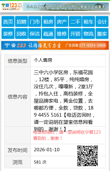 三中六小学区房,东福花园,12楼,85平,纯纯婚房,没住几次,嘎嘎新,2室1厅,拎包入住,高档装修,全屋品牌家电,黄金位置,去哪都方便,全款,贷款,189 4455 5161 【电话咨询时,请一定说明在望奎信息网看到的,谢谢!】 |