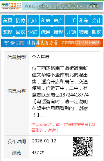 位于西环路南三道街道南新建文华楼下坐南朝北商服出售,适合开店和居住,交通便利,临近五中,二中,有意者联系电话18724418774 【电话咨询时,请一定说明在望奎信息网看到的,谢谢!】 |