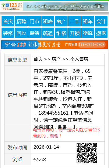 自家楼康馨家园,2楼,65平,2室1厅,不山不顶,养老房,陪读,首选,拎包入住,新换3层铝塑铝窗户纯毛坯新装修,拎包入住,新盘6柱地热 ,室内温度30度°,18944555161