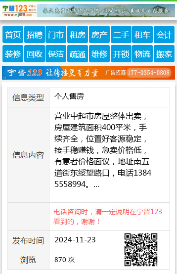 电话咨询时,请一定说明在望奎信息网看到的,谢谢!