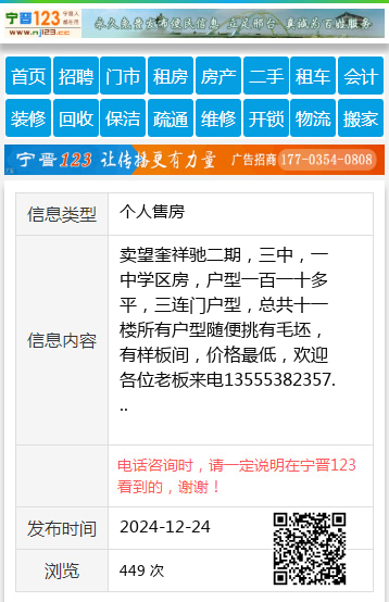 卖望奎祥驰二期,三中,一中学区房,户型一百一十多平,三连门户型,总共十一楼所有户型随便挑有毛坯,有样板间,价格最低,欢迎各位老板来电13555382357 【电话咨询时,请一定说明在望奎信息网看到的,谢谢!】 |