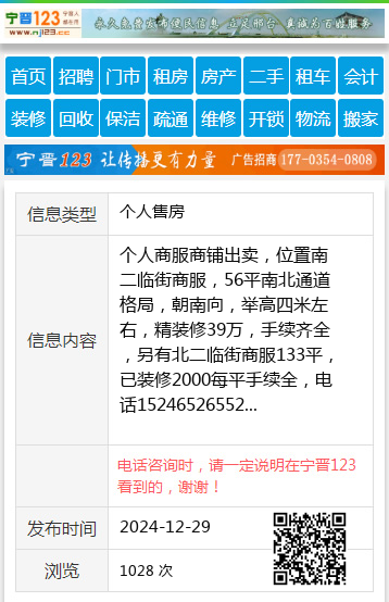 个人商服商铺出卖,位置南二临街商服,56平南北通道格局,朝南向,举高四米左右,精装修39万,手续齐全,另有北二临街商服133平,已装修2000每平手续全,电话15246526552 【电话咨询时,请一定说明在望奎信息网看到的,谢谢!】 |