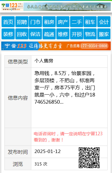 急用钱,8.5万,怡景家园,多层顶楼,不把山,标准两室一厅,房本75平方,出门就是一小,六中,包过户18746526850