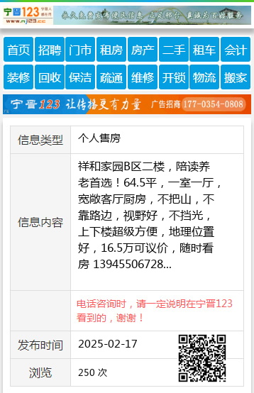 祥和家园B区二楼,陪读养老首选!64.5平,一室一厅,宽敞客厅厨房,不把山,不靠路边,视野好,不挡光,上下楼超级方便,地理位置好,16.5万可议价,随时看房 13945506728