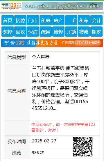 兰五村新盖平房 南五绥望路口灯岗东新盖平房85平,库房100平,院子800多平,干净利落板正,是哥们聚会娱乐休闲的理想场所,交通便利,价格合理。电话☎️15645551210