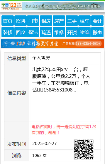 出卖22年本田xrv 一台,原版原漆,公里数2.2万,个人一手车,车况嘎嘎板正,电话☎️15845531008