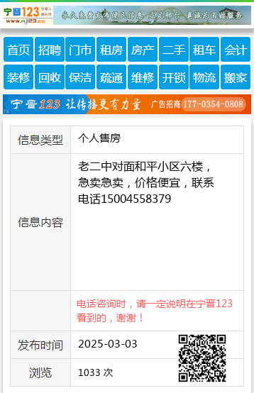 个人特价房源(非中介): 粉厂楼房出售(2024年装修),77.36平米,不山不顶,临近六小、三中、新一中,9.8万。☎️18504557014