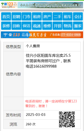 佳兴小区阳面车库出卖25.5平简装有房照可过户,联系电话16616099988