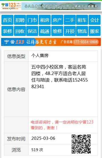 五中四小校区房,客运名苑四楼,48.2平方适合老人居住与陪读,联系电话15245582341