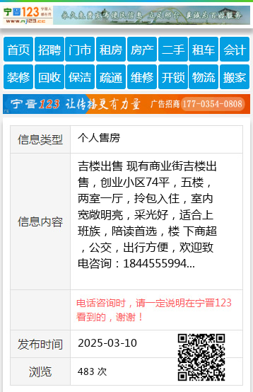 吉楼出售 现有商业街吉楼出售,创业小区74平,五楼,两室一厅,拎包入住,室内宽敞明亮,采光好,适合上班族,陪读首选,楼 下商超,公交,出行方便,欢迎致电咨询:1844555994 【电话咨询时,请一定说明在望奎信息网看到的,谢谢!】 |