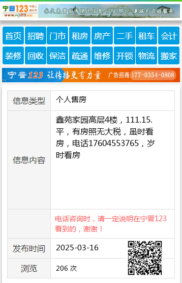 鑫苑家园高层4楼,111.15.平,有房照无大税,虽时看房,电话17604553765,岁时看房