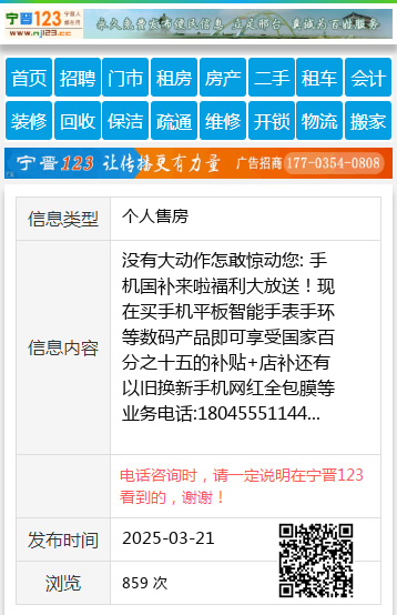 没有大动作怎敢惊动您: 手机国补来啦福利大放送!现在买手机平板智能手表手环等数码产品即可享受国家百分之十五的补贴+店补还有以旧换新手机网红全包膜等业务电话:18045551144 【电话咨询时,请一定说明在望奎信息网看到的,谢谢!】 |