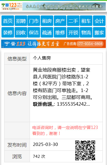 联系电话:13555354242 【电话咨询时,请一定说明在望奎信息网看到的,谢谢!】 |