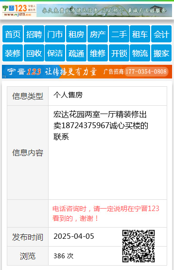 宏达花园两室一厅精装修出卖18724375967诚心买楼的联系