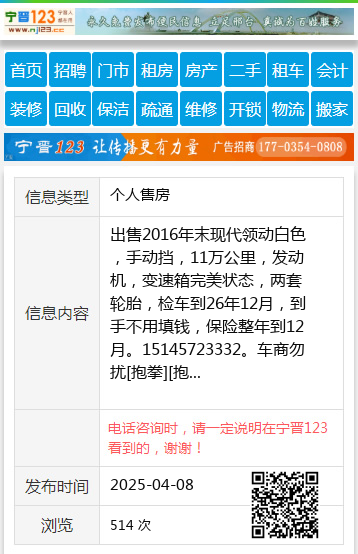 出售2016年末现代领动白色,手动挡,11万公里,发动机,变速箱完美状态,两套轮胎,检车到26年12月,到手不用填钱,保险整年到12月。15145723332。车商勿扰[抱拳][抱 【电话咨询时,请一定说明在望奎信息网看到的,谢谢!】 |