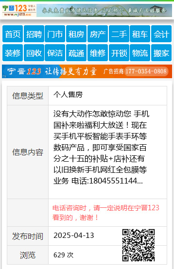 没有大动作怎敢惊动您 手机国补来啦福利大放送!现在买手机平板智能手表手环等数码产品,即可享受国家百分之十五的补贴+店补还有以旧换新手机网红全包膜等业务 电话:18045551144 【电话咨询时,请一定说明在望奎信息网看到的,谢谢!】 |