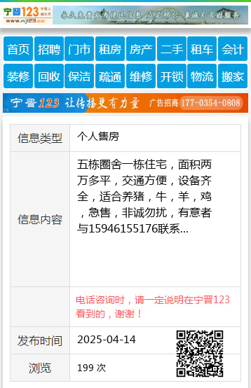 五栋圈舍一栋住宅,面积两万多平,交通方便,设备齐全,适合养猪,牛,羊,鸡,急售,非诚勿扰,有意者与15946155176联系 【电话咨询时,请一定说明在望奎信息网看到的,谢谢!】 |