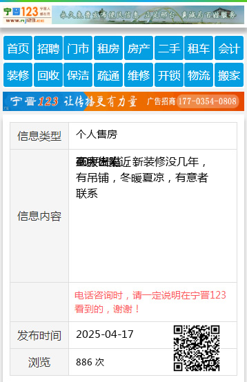 客运名苑小区四楼出卖,75.78平方,精装修。电话☎️13704558837