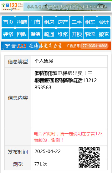 402室75.6平联系电话13212853563 【电话咨询时,请一定说明在望奎信息网看到的,谢谢!】 |