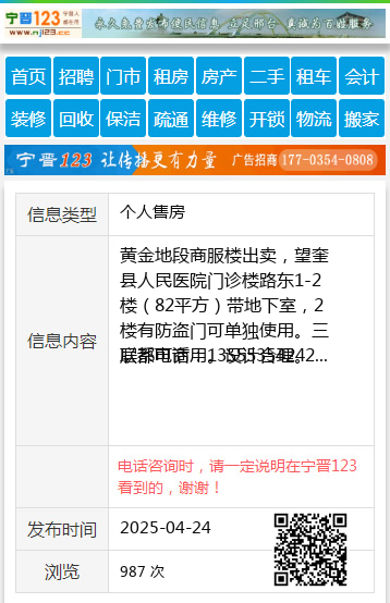 联系电话:13555354242 【电话咨询时,请一定说明在望奎信息网看到的,谢谢!】 |