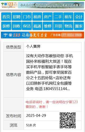 没有大动作怎敢惊动您 手机国补来啦福利大放送!现在买手机平板智能手表手环等数码产品,即可享受国家百分之十五的补贴+店补还有以旧换新手机网红全包膜等业务 电话:18045551144 【电话咨询时,请一定说明在望奎信息网看到的,谢谢!】 |