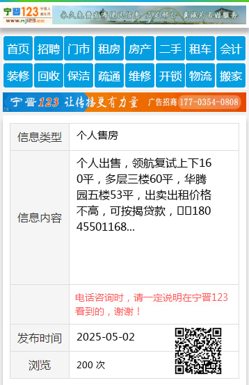 个人出售,领航复试上下160平,多层三楼60平,华腾园五楼53平,出卖出租价格不高,可按揭贷款,☎️18045501168 【电话咨询时,请一定说明在望奎信息网看到的,谢谢!】 |