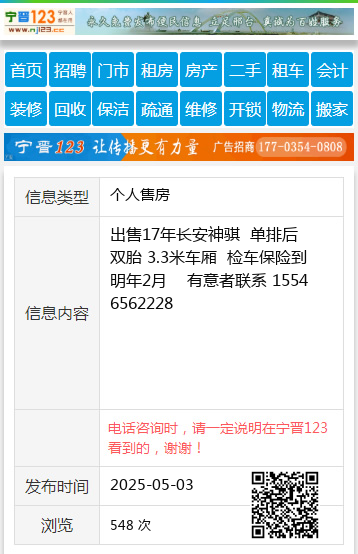 出售17年长安神骐 单排后双胎 3.3米车厢 检车保险到明年2月 有意者联系 15546562228