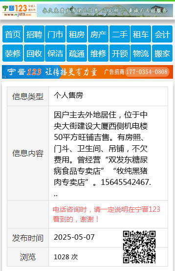 因户主去外地居住,位于中央大街建设大厦西侧机电楼50平方旺铺吉售。有房照、门斗、卫生间、吊铺,不欠费用。曾经营“双发东糖尿病食品专卖店”“牧纯黑猪肉专卖店”。15645542467 【电话咨询时,请一定说明在望奎信息网看到的,谢谢!】 |