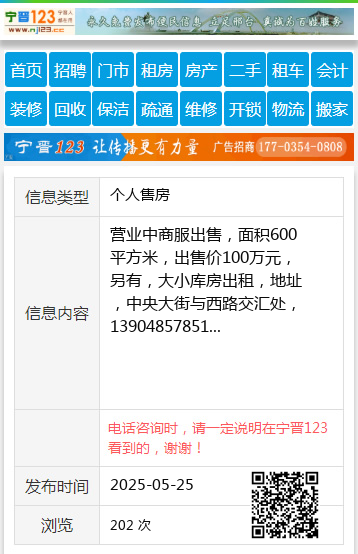 营业中商服出售,面积600平方米,出售价100万元,另有,大小库房出租,地址,中央大街与西路交汇处,13904857851 【电话咨询时,请一定说明在望奎信息网看到的,谢谢!】 |