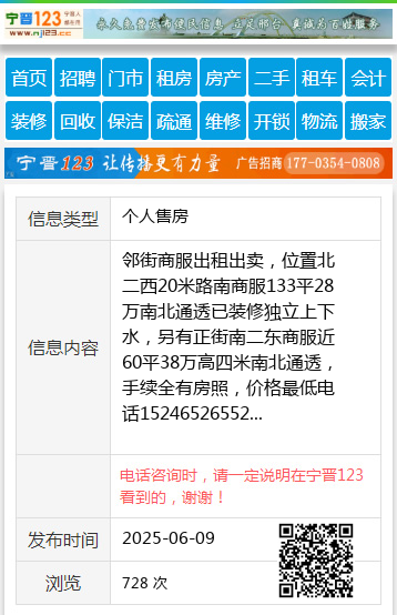 邻街商服出租出卖,位置北二西20米路南商服133平28万南北通透已装修独立上下水,另有正街南二东商服近60平38万高四米南北通透,手续全有房照,价格最低电话15246526552 【电话咨询时,请一定说明在望奎信息网看到的,谢谢!】 |