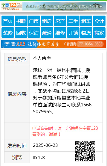 承接一对一结构化面试,授课老师具备6年公考面试授课经验,为前华图面试讲师,实战平均面试成绩86.21。对于参加近期望奎本地事业单位面试的考生可联系15665079965。 【电话咨询时,请一定说明在望奎信息网看到的,谢谢!】 |
