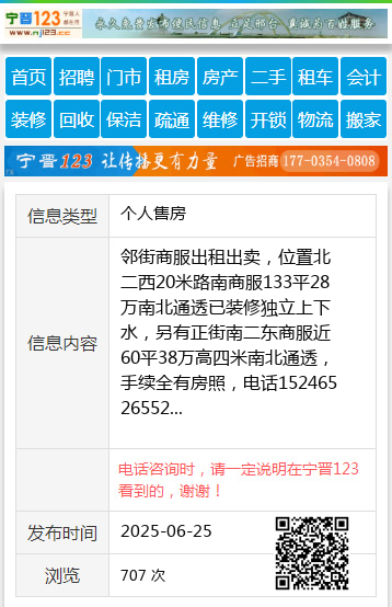 邻街商服出租出卖,位置北二西20米路南商服133平28万南北通透已装修独立上下水,另有正街南二东商服近60平38万高四米南北通透,手续全有房照,电话15246526552 【电话咨询时,请一定说明在望奎信息网看到的,谢谢!】 |