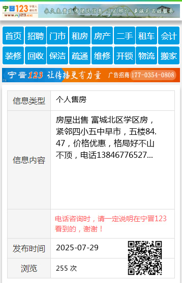 房屋出售 富城北区学区房,紧邻四小五中早市,五楼84.47,价格优惠,格局好不山不顶,电话13846776527