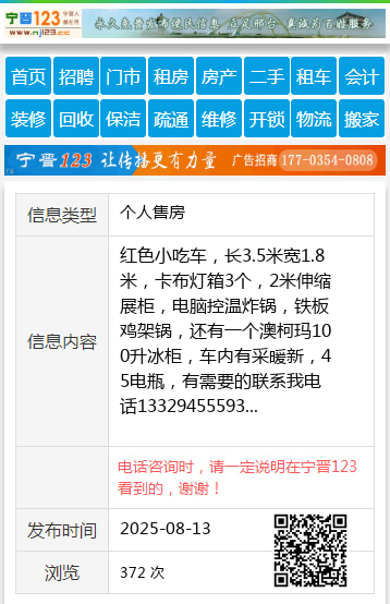 红色小吃车,长3.5米宽1.8米,卡布灯箱3个,2米伸缩展柜,电脑控温炸锅,铁板鸡架锅,还有一个澳柯玛100升冰柜,车内有采暖新,45电瓶,有需要的联系我电话13329455593 【电话咨询时,请一定说明在望奎信息网看到的,谢谢!】 |