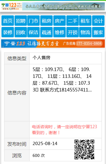 5层:109.17㎡、 6层:109.17㎡、 11层:113.16㎡、 14层:87.67㎡、 15层:107.33㎡ 联系方式18145557411 【电话咨询时,请一定说明在望奎信息网看到的,谢谢!】 |