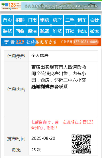 吉房出卖现有南大四道街两间全砖铁皮房出售,内有小园,仓房,邻近三中六小交通便利有意者联系