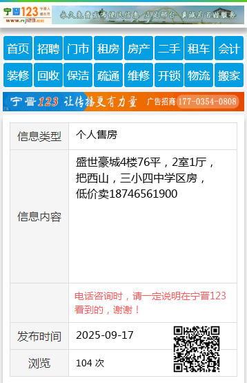盛世豪城4楼76平,2室1厅,把西山,三小四中学区房,低价卖18746561900