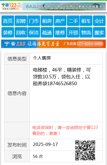 电梯楼,46平,精装修,可贷款10.5万,领包入住,以租养袋18746526850