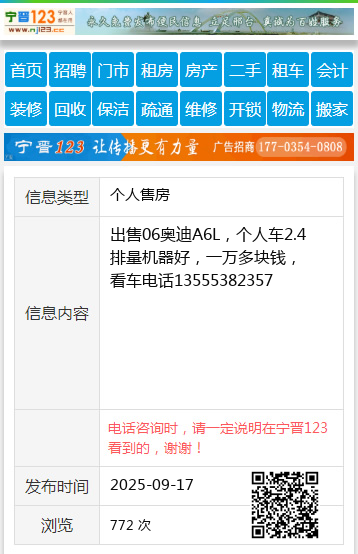 出售06奥迪A6L,个人车2.4排量机器好,一万多块钱,看车电话13555382357