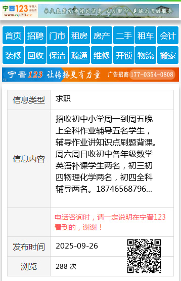 招收初中小学周一到周五晚上全科作业辅导五名学生,辅导作业讲知识点刷题背课。周六周日收初中各年级数学英语补课学生两名,初三初四物理化学两名,初四全科辅导两名。18746568796 【电话咨询时,请一定说明在望奎信息网看到的,谢谢!】 |
