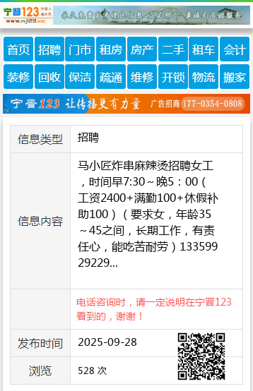 | 防骗提醒: | 望奎信息网(www.wangkui.cc)提醒您:手工活、网络兼职、刷单,都是骗子!凡以各种名义收取费用的都是骗子!找工作是往兜里挣钱,让你往外掏钱的都是骗子!异地招聘请提高警惕,谨防诈骗! |