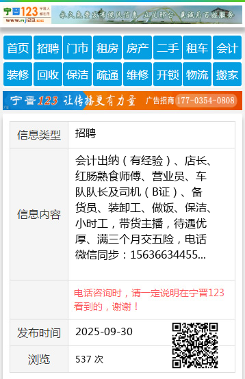 会计出纳(有经验)、店长、红肠熟食师傅、营业员、车队队长及司机(B证)、备货员、装卸工、做饭、保洁、小时工,带货主播,待遇优厚、满三个月交五险,电话微信同步:15636634455 【电话咨询时,请一定说明在望奎信息网看到的,谢谢!】 |